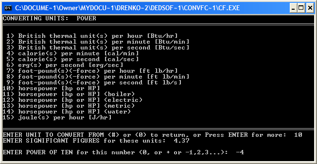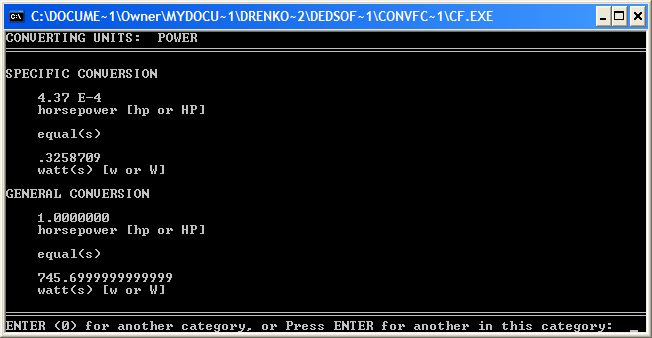 Screenshots: Sample Calculation (Horsepower to Watts)
