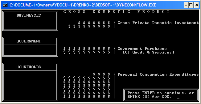 Sample Screenshots: Gross Domestic Product as Either Spending by or Income of Businesses, Government, & Households